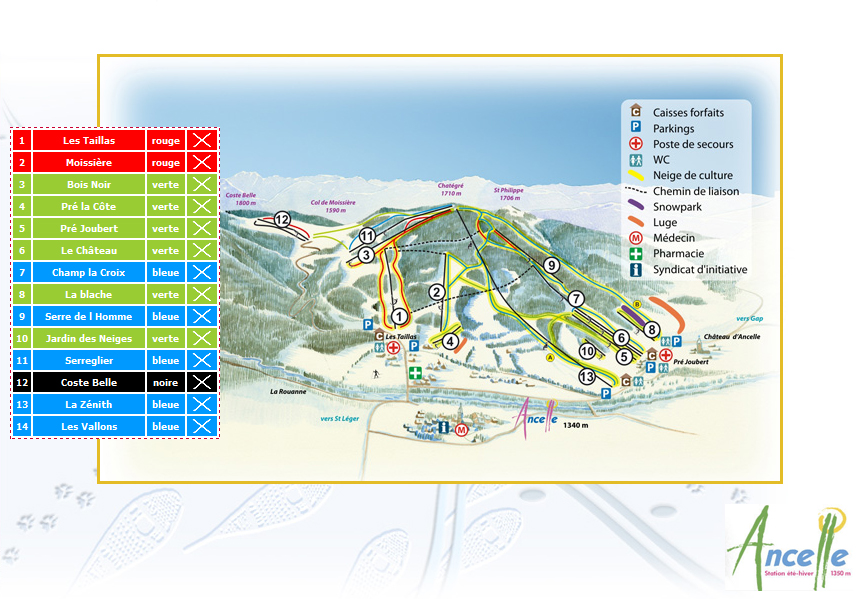 Trouvez la location de vos vacances au ski à Ancelle. Ancelle est à 1350 m d'altitude, avec un horizon très dégagé, des expositions variées et une bonne qualité de neige, pour satisfaire les skieurs et surfeurs de tous niveaux. L'ensemble du domaine (hors Costebelle-Moissière et piste B) est équipé d'un système d'enneigement artificiel qui vous assure un enneigement suffisant tout au long de l'hiver. Au pied des pistes, le front de neige très ensoleillé offre des terrasses conviviales et une piste de luge très prisée, et pas seulement par les plus petits !